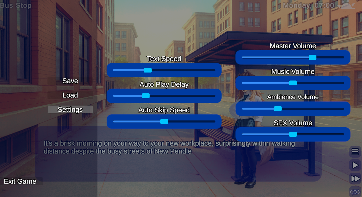 But the thing I've added most recently was more controls for text like auto skip and auto play, and controls to change how fast those go.